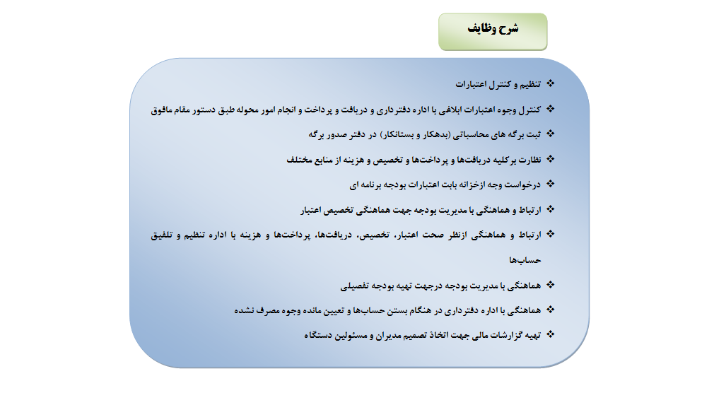 شرح وظایف اداره بودجه و پایش عملکرد